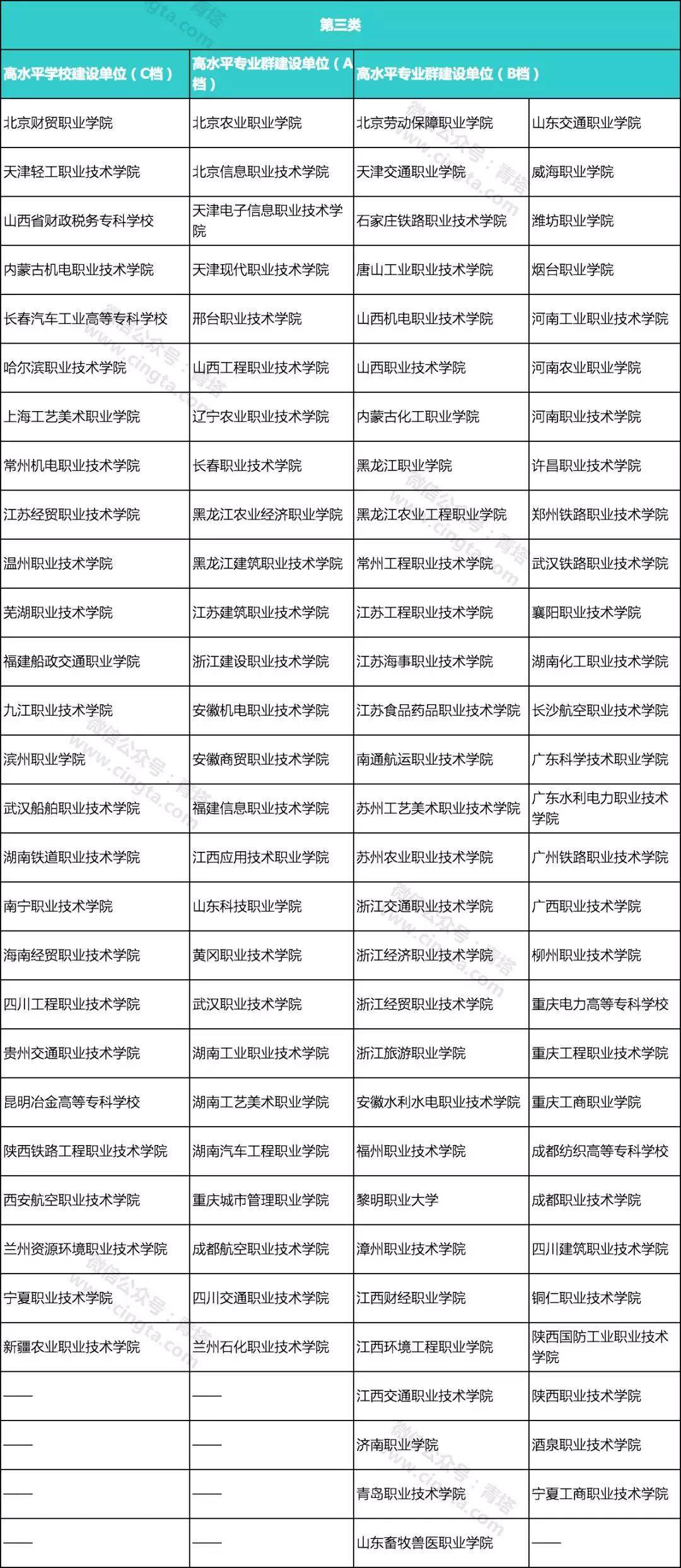 中國(guó)特色高水平高職學(xué)校和專業(yè)建設(shè)計(jì)劃擬建單位公示名單: